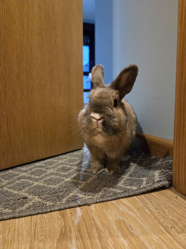 Encontraron a Pío en un parque de Madrid, en mitad de una tormenta. Pudieron cogerlo fácilmente porque es dócil, muy cariñoso y tranquilo, y porque estaba aterrado, seguramente. Es un machito joven, de un año como mucho, que ya sabe lo que es el abandono. Es un conejo grande, que se derrite como un bebé cuando le hacen caricias. Buscamos para él una familia que sea consciente de que el amor y el cariño de un conejo no se mide por las orejas caídas o una medida pequeña. Es muy sociable con conejos y personas.