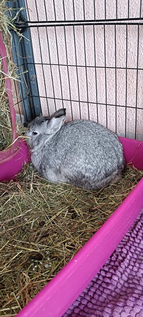 Rescatamos a Gael de un patio en el que llevaba viviendo enjaulado tres años. Es un conejo muy bueno, simpático y extremadamente necesitado de contacto humano. Es muy social y disfruta de la atención y los mimos. Se lleva muy bien con conejos también. Ha tenido una pequeña afección renal y continúa tomando un protector para ello, que se toma fenomenal porque es dócil y muy fácil. Buscamos para él una familia que pueda quererle y respetarle.